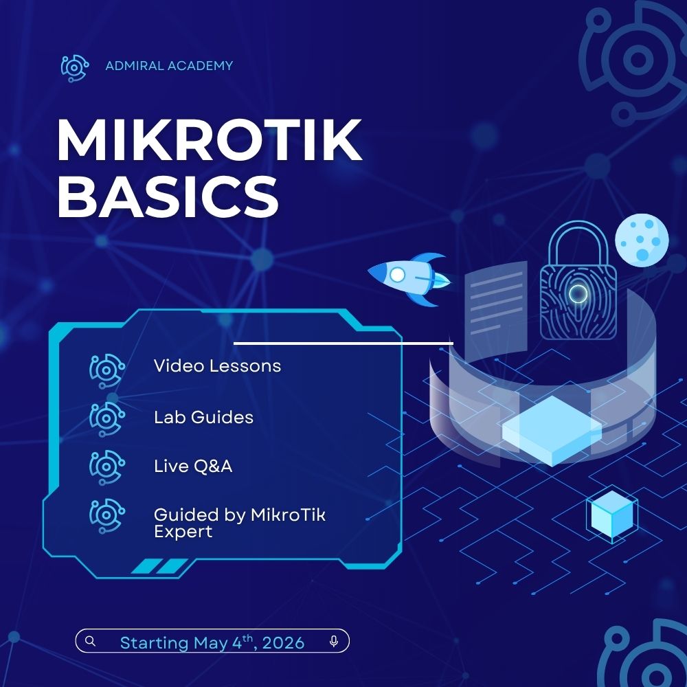 Admiral Academy is a virtual training initiative designed to help network operators build practical MikroTik skills—from fundamentals to advanced, modern architectures.