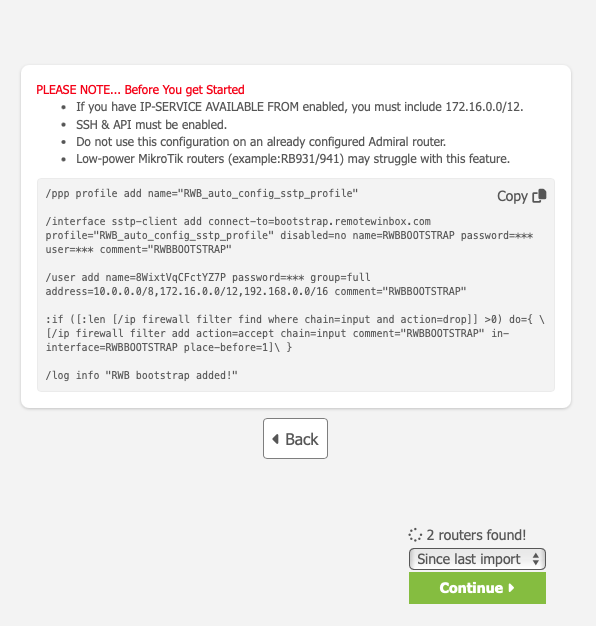 Use this feature to copy and paste a generic config to a router. When the router comes online it will automatically appear on your dashboard as an “unprovisioned” router.